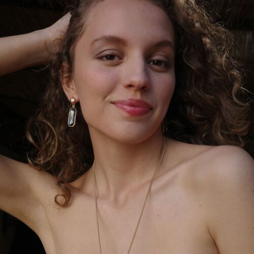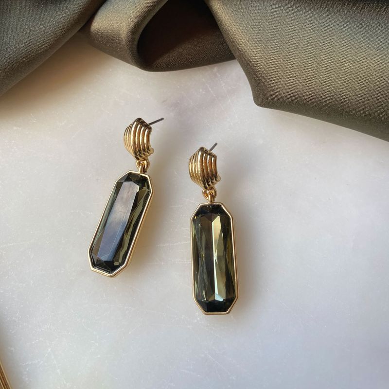 A&C Oslo modernsed kõrvarõngad, käsitsi lõigatud klaasist ripatsiga.Kullatud detailid, post- kinnitus on titaanist. Ei sisalda niklit, kaadmiumi ega pliid. Valmistatud käsitööna. Kõrvarõngaste pikkus on 3,8cm.