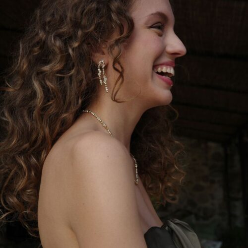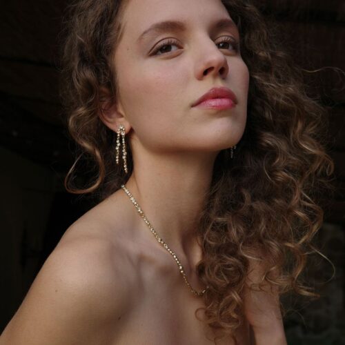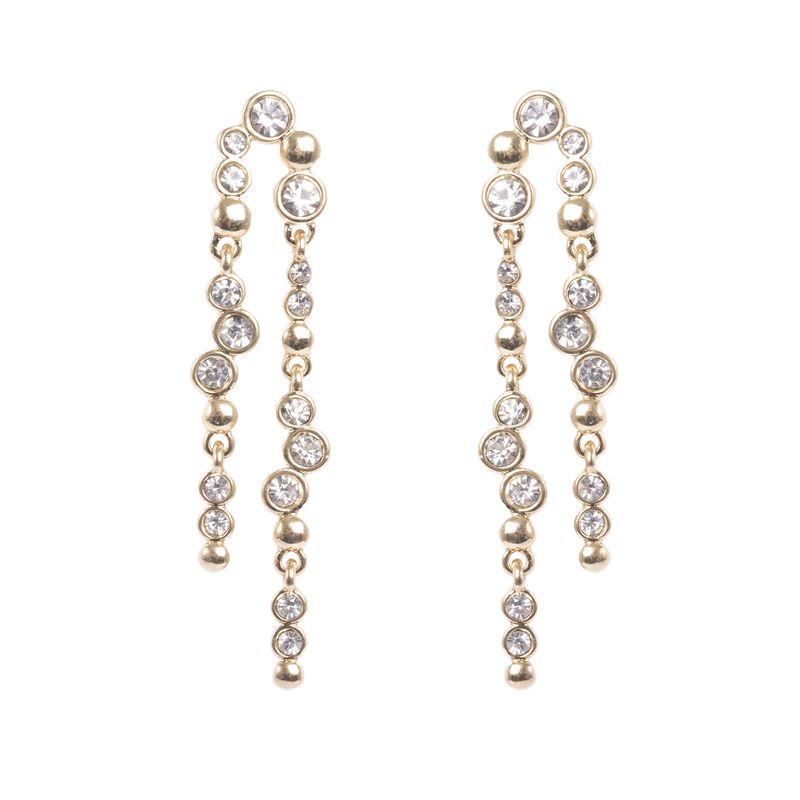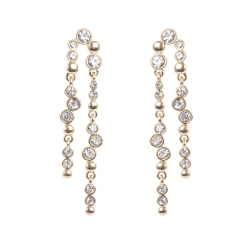 A&C Oslo naiselikud, säravate kristallidega kõrvarõngad. Kullatud detailid, post- kinnitus on titaanist. Ei sisalda niklit, kaadmiumi ega pliid. Valmistatud käsitööna. Kõrvarõngaste pikkus on 5cm.