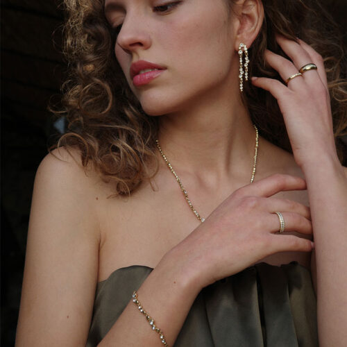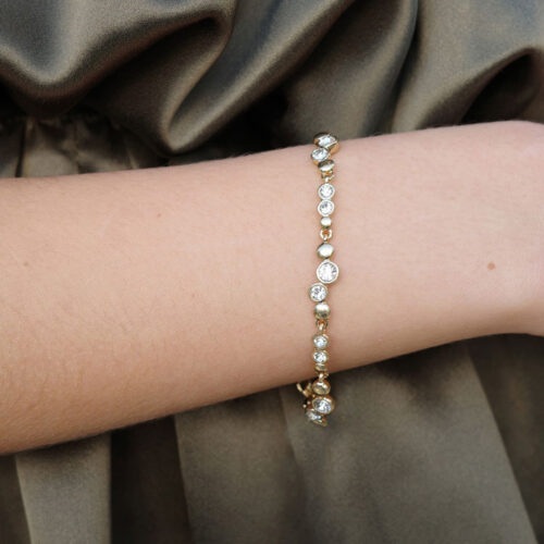 A&C Oslo naiselik ümmarguste lihvitud kristallidega käevõru. Kullatud kattega lõppviimistlus. Ümbermõõt 17cm+5cm pikendus. Ei sisalda niklit, kaadmiumi ega pliid. Valmistatud käsitööna.