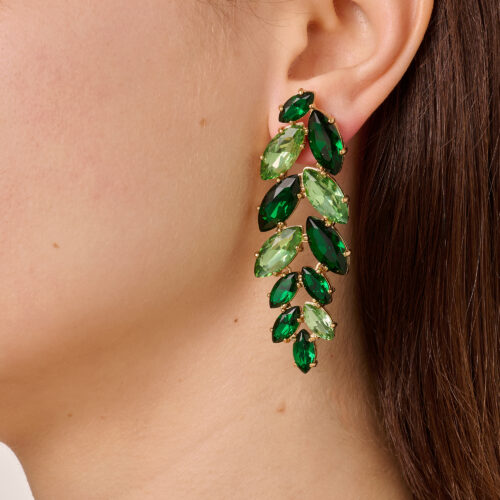 D/K erakordselt pilkupüüdvad kõrvarõngad, 12 lihvitud kristalliga. Post- kinnitus kirurgilisest terasest. Messing, kullatud kattega lõppviimistlus. Valmistatud käsitööna. Ei sisalda niklit, kaadmiumi ega pliid. Pikkus 6cm.